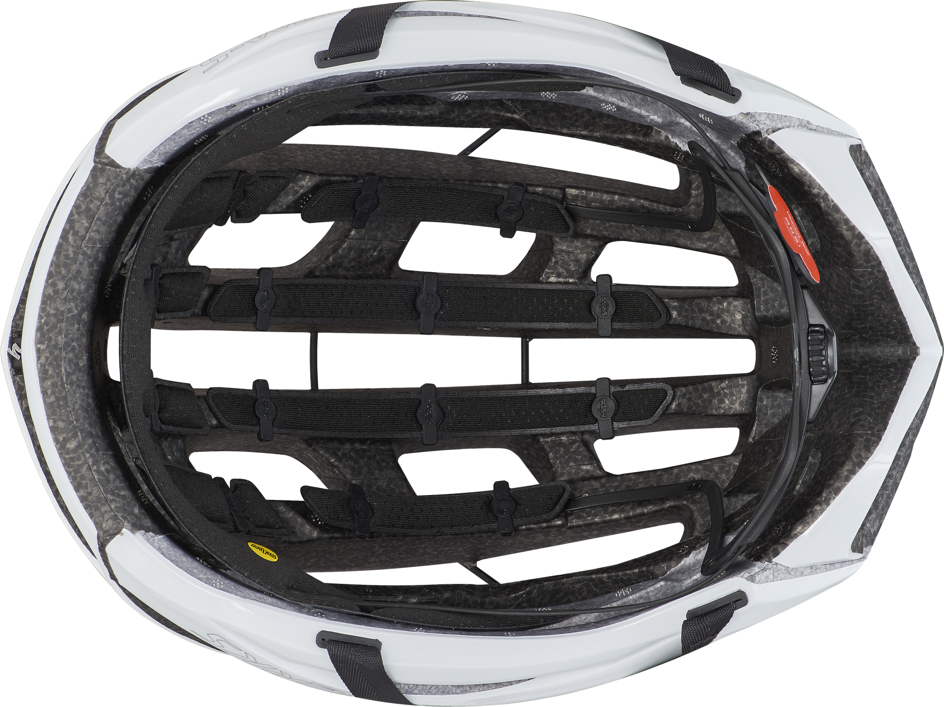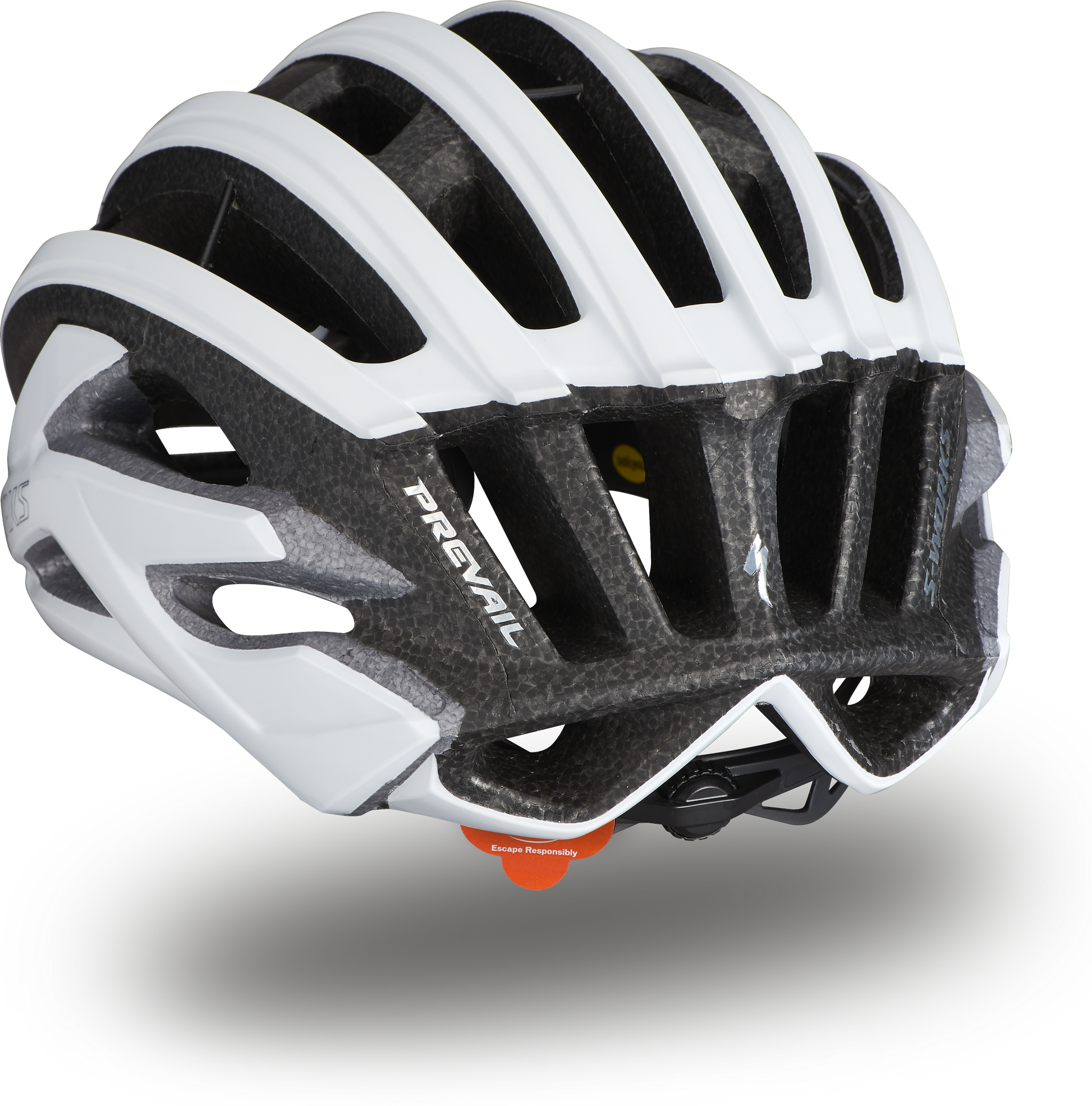 Cooler heads will always prevail. The new S-Works Prevail II Vent’s massive cooling power helps better regulate your body’s temperature to keep you cooler so that you’ll always be ready when your ride heats up. We took everything that the S-Works Prevail II was doing right, and did it even better. One of the greatest benefits resulted from the removal of a total of seven foam “bridges” from the center and sides to create more effective ventilation channels. These expanded channels move air across your head 18% faster than the original Prevail II. The faster air moves across your head, the faster heat is whisked away from your head and the cooler you remain—it’s called “convective heat transfer”. This all adds up to the coolest helmet we’ve ever made. For helmets sold in the U.S. and Canada: Complies with U.S. CPSC Safety Standard for Bicycle Helmets for Persons Age 5 and Older. The new 5th Dimension Cooling System, with its redesigned, patent pending, aramid-reinforced skeleton, provides internal EPS support allowing for 20% larger vents with deep internal channels and aligned exhaust ports.